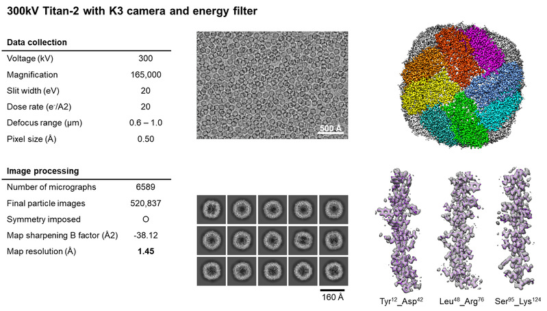 平台完成了300 kV#2 高端透射电镜的标准样品性能的重新测试,标准参照样品Apoferritin获得了1.45 Å分辨率的重构,现将结果同各位用户分享。